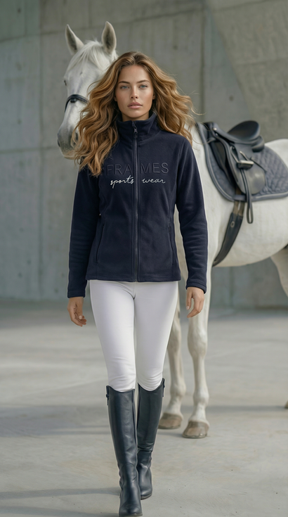 Das hochwertige 100 % Polyester-Fleece bietet angenehme Wärme, ein super softes Tragegefühl und hohe Atmungsaktivität – leicht, cozy und gleichzeitig funktional. Genau das, was Reiterinnen brauchen.