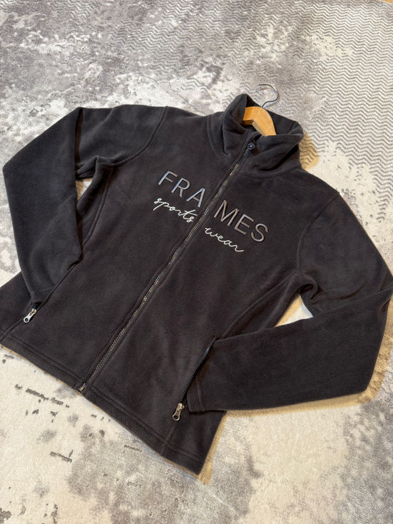 Auf der Vorderseite setzt der moderne 3D-„FRAMES“-Schriftzug ein stilvolles Statement. Eine feine, silberne sportswear-Stickerei darunter ergänzt den sportlich-edlen Look und verleiht der Jacke eine feminine Note.
