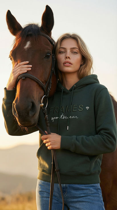 Der Stella Hoodie vereint sportlichen Reitstyle mit fein gesetzten, eleganten Akzenten – genau der Look, den moderne Reiterinnen lieben.